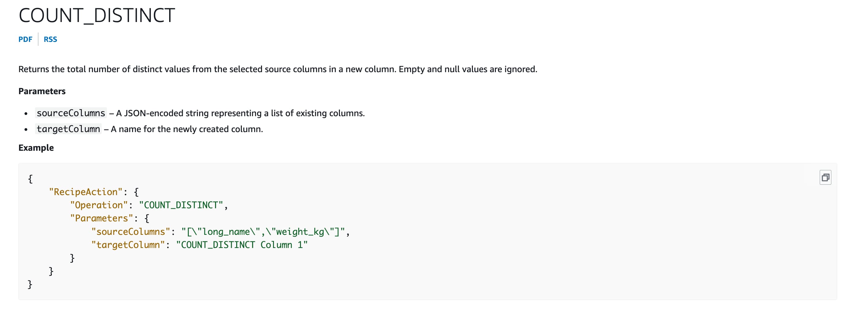 https://docs.aws.amazon.com/databrew/latest/dg/recipe-actions.functions.COUNT_DISTINCT.html