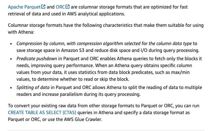 via - https://docs.aws.amazon.com/athena/latest/ug/columnar-storage.html
