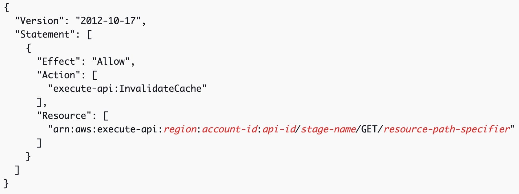 This policy allows the API Gateway execution service to invalidate the cache for requests on the specified resource (or resources).