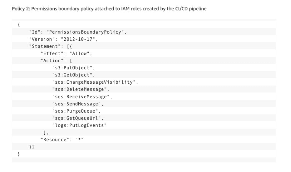 Example permissions boundary policy attached to IAM roles created by the CI/CD pipeline: