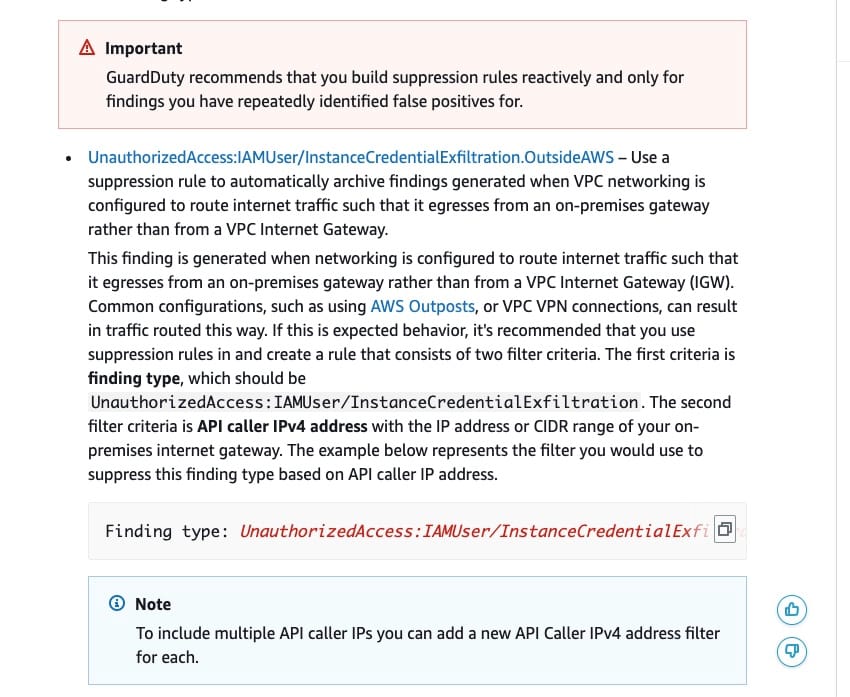 Suppression rule for UnauthorizedAccess:IAMUser/InstanceCredentialExfiltration.OutsideAWS: