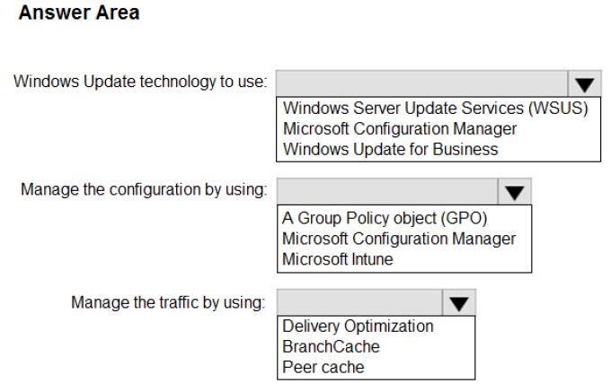 How should you configure Windows Update? To answer, select the appropriate options in the answer area.