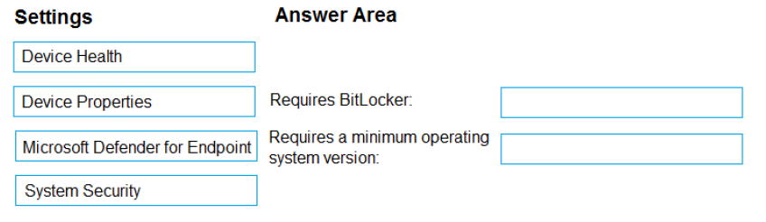 Which setting of the compliance policy should you configure for each requirement? To answer, drag the appropriate settings to the correct