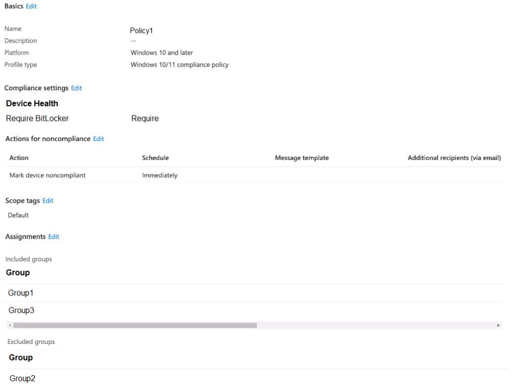 You deploy the device compliance policy shown in the exhibit. (Click the Exhibit tab.)
