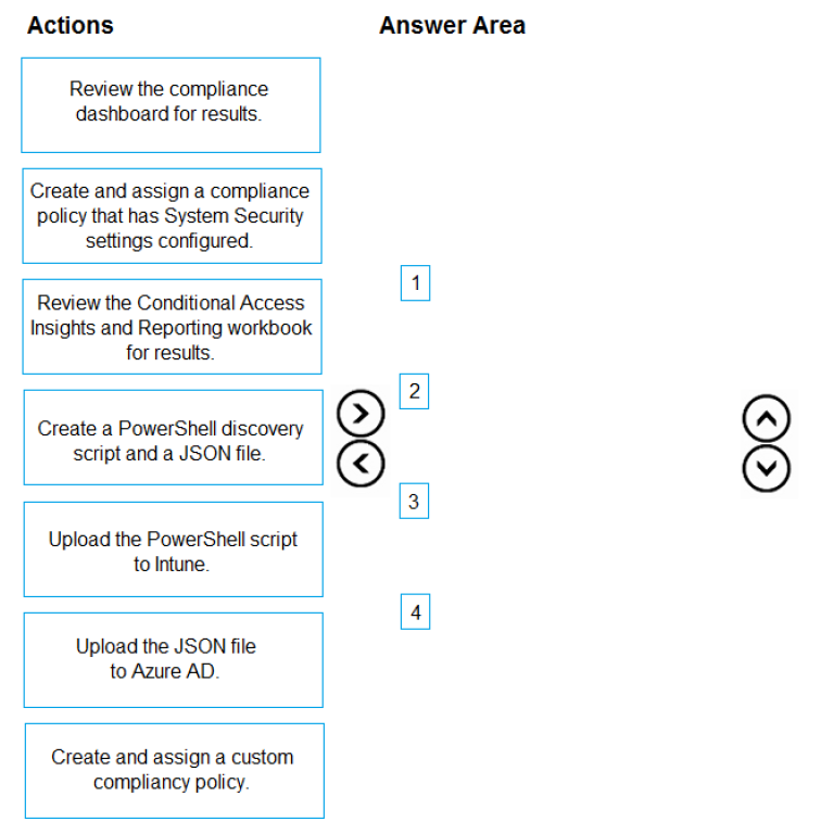Which four actions should you perform in sequence? To answer, move the appropriate actions from the list of actions to the answer area and
