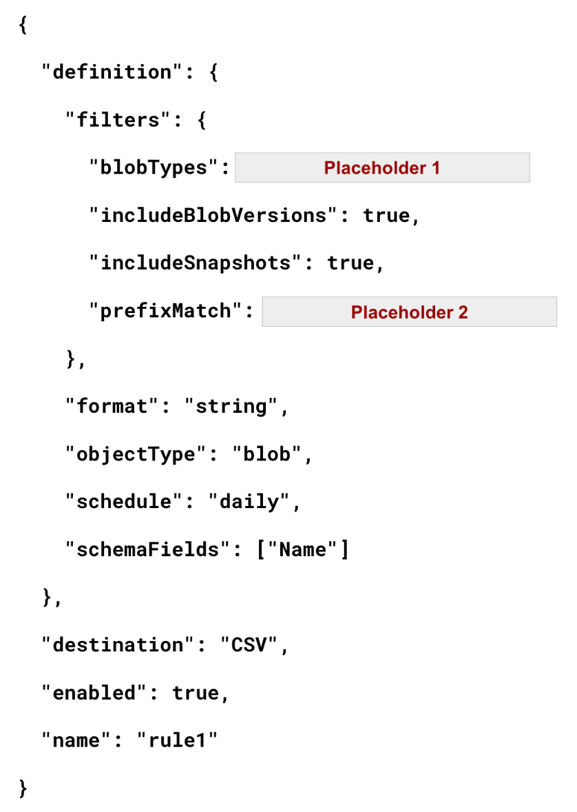 You plan to use an Azure Resource Manager (ARM) template to create a blob inventory rule named rule1.