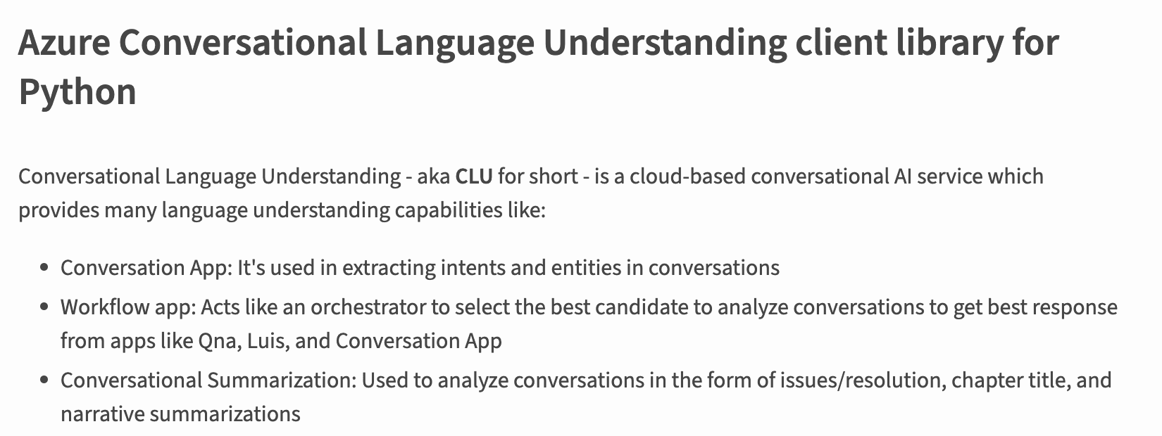 azure-mgmt-cognitiveservices is INCORRECT because this package is used for managing Azure Cognitive Services resources, such as creating and configuring them, rather than directly interacting with the models for language understanding and intent recognition.