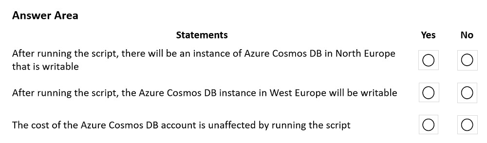 You have an Azure Cosmos DB Core (SQL) account that has a single write region in West Europe.