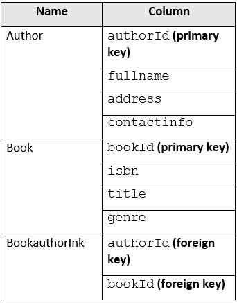 You maintain a relational database for a book publisher. The database contains the following tables.