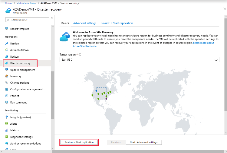 The image below, from the Microsoft documentation. shows where in the Azure portal you would configure replication for Azure Site Recovery.