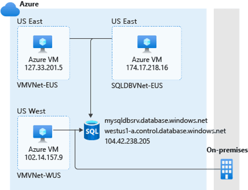 If you configure access from a virtual network with a virtual network rule, any resources in that virtual network can access the Azure SQL Database logical server. This can simplify the challenge of configuring access to all static and dynamic IP addresses that need to access the data. By using virtual network rules, you can specify one or more virtual networks, encompassing all the resources within them. You can also start to apply virtual network technologies to connect networks across regions in both Azure and on-premises.