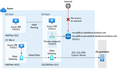 Azure SQL Database by default has a public internet endpoint. Access to this endpoint can be controlled via firewall rules, or limited to specific Azure networks, using features like Virtual Network endpoints or Private Link.