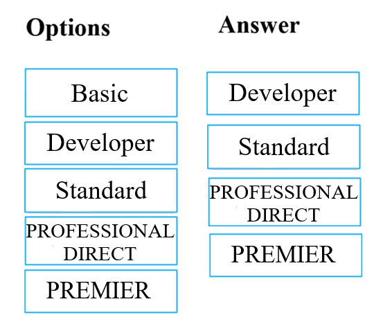Your IT department is evaluating Azure support plans to ensure they can effectively troubleshoot issues with their cloud infrastructure. The support plan must allow for new support requests to be opened. Which of the following are support plans that will allow this? Answer by dragging the correct option from the list to the answer area. Select and Place: