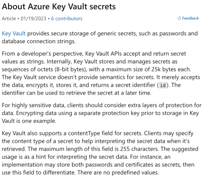 https://learn.microsoft.com/en-us/azure/key-vault/secrets/about-secrets