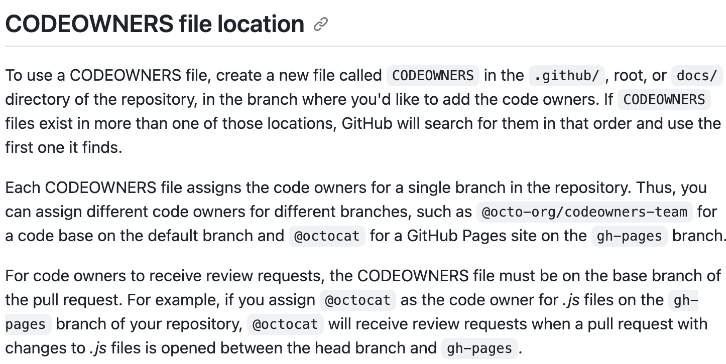 .github/ is CORRECT because the CODEOWNERS file should be placed in the repository's .github/ directory (or alternatively in the root or docs/ directory of the repository). This file is used by GitHub to define individuals or teams that are responsible for code in the repository. When the CODEOWNERS file is in the .github/ directory, GitHub automatically uses this file to determine the code owners for each file in the repository, which is essential for implementing a branch protection rule that requires code changes to be reviewed by code owners.