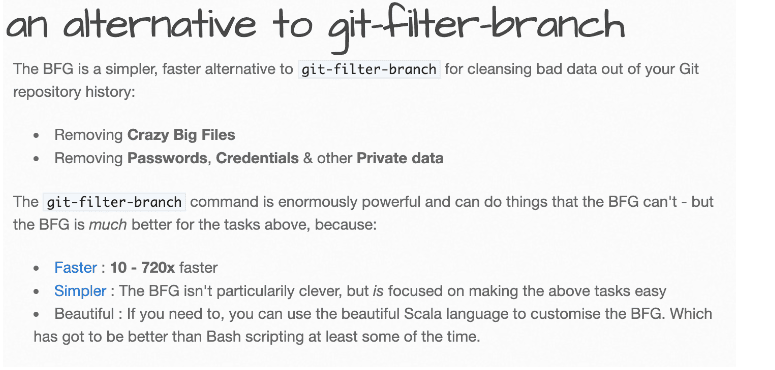 bfg is CORRECT because the BFG Repo-Cleaner is a tool specifically designed for cleaning unwanted data from Git repositories, particularly large files or sensitive data committed accidentally. It's more efficient than using Git's built-in filter-branch command and is well-suited for this purpose. BFG will allow you to remove the large file from the repository's history, thus reducing the repository's size.