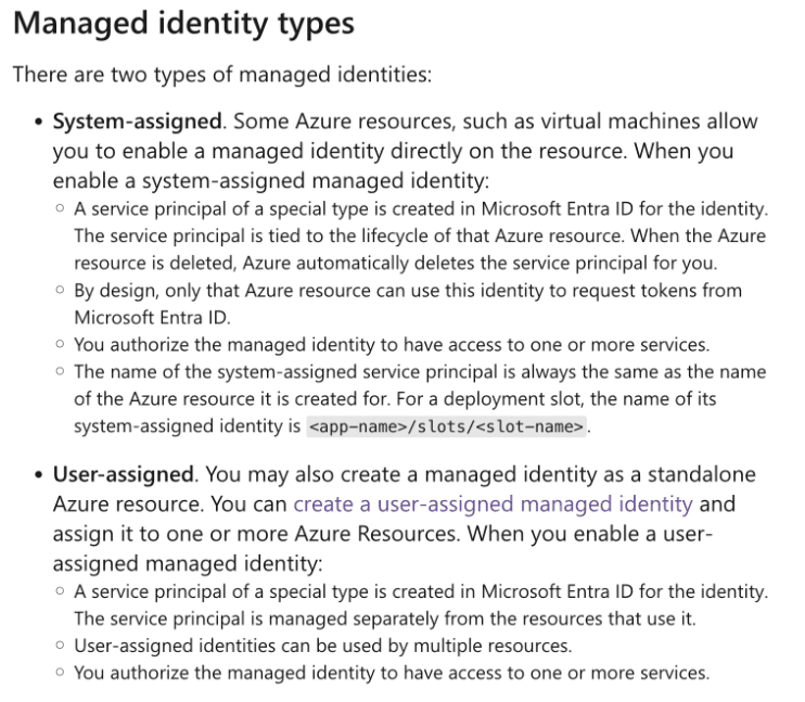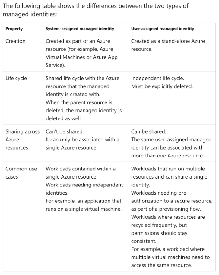 a service principal is INCORRECT because, while it can be used to represent an application or service's identity, it does not automatically manage credentials like a managed identity. Service principals are more complex to manage as they require manual handling of credentials and permissions.