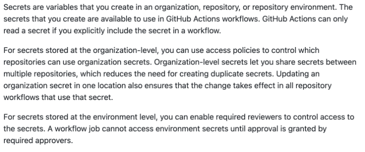Enable required reviewers is INCORRECT because this setting pertains to the branch protection rules and code review process, and it does not relate to the sharing or accessibility of secrets across multiple workflows or repositories.