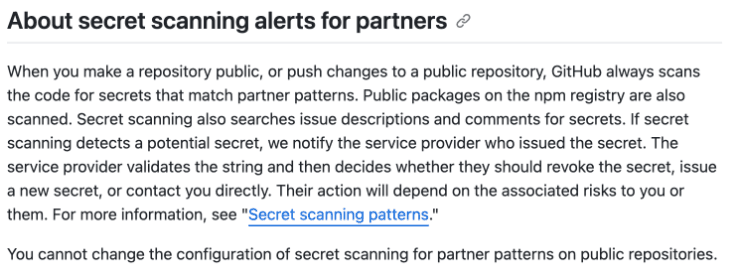The secret scanning partner is CORRECT because when a commit is made to a public repository like Public1 and it contains a pattern that matches a regular expression, especially related to secrets, GitHub's secret scanning feature notifies the secret scanning partner (the service provider who issued the secret). This process is automatic for public repositories. The partner then validates the string and decides on the appropriate action, which may include contacting the repository's owner or taking other measures to secure the secret.