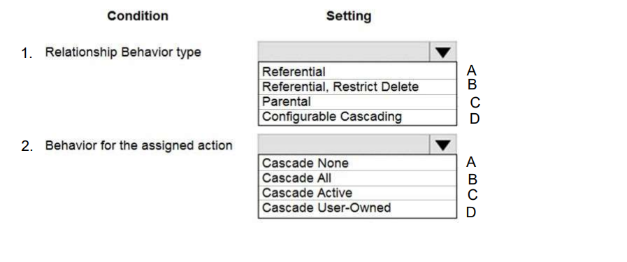 Which settings should you use? To answer, select the appropriate options in the answer area.