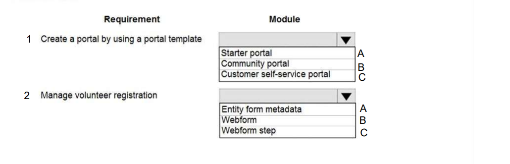 Which modules should you use? To answer, select the appropriate options in the answer area.
