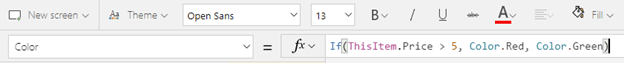 - If(ThisItem.Price > 5, Color.Red, Color.Green)