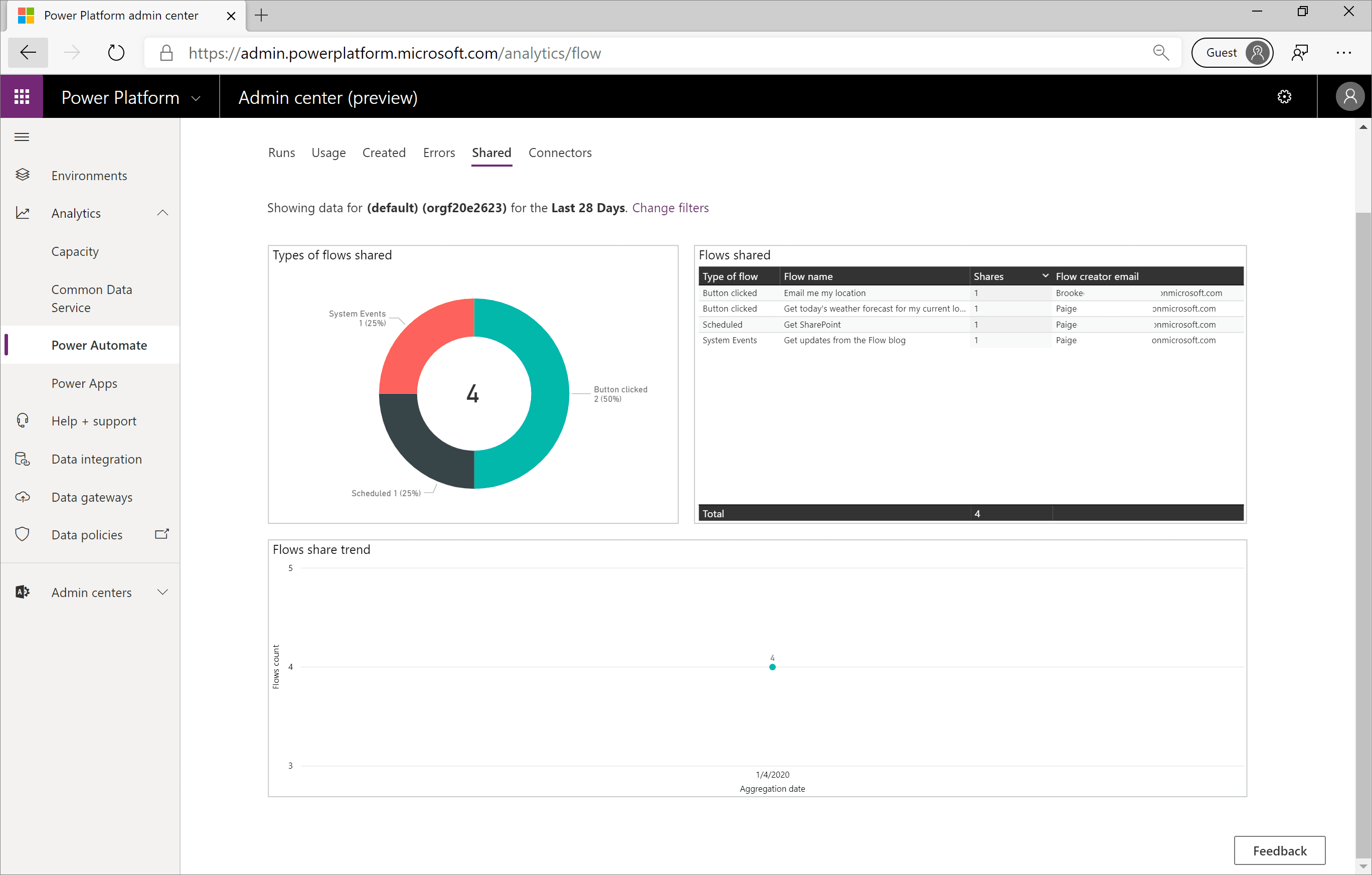 Six Power Automate reports are available in the Power Platform Admin Centre: