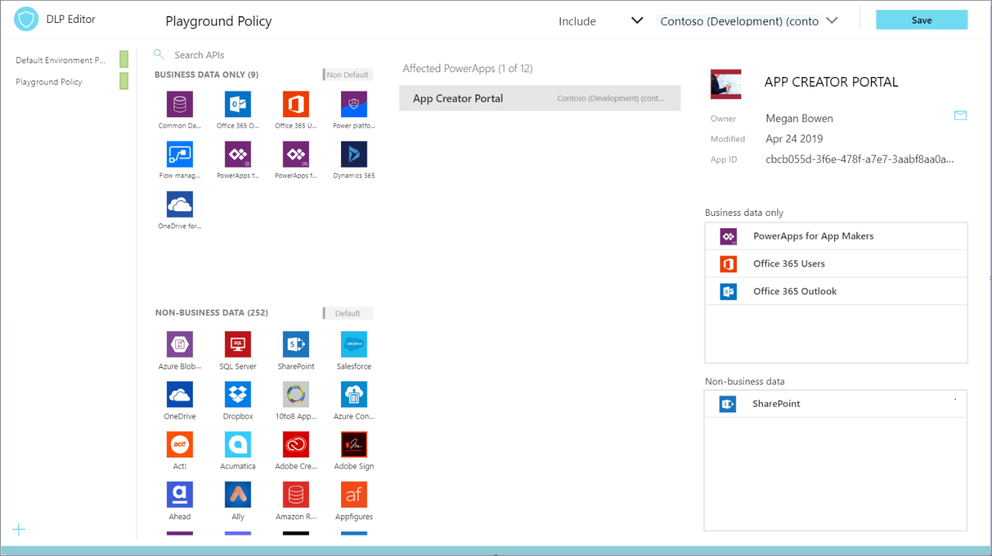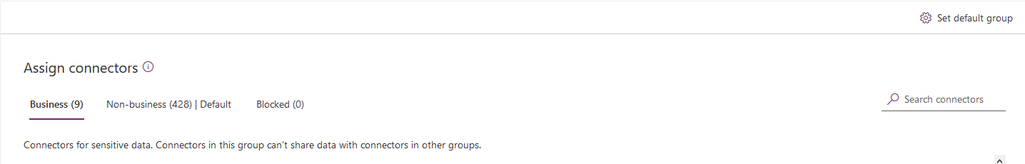 DLP data groups can be used to separate connectors that share similar characteristics when it comes to their applicability to the business. Custom connectors are placed in the default data group automatically.
