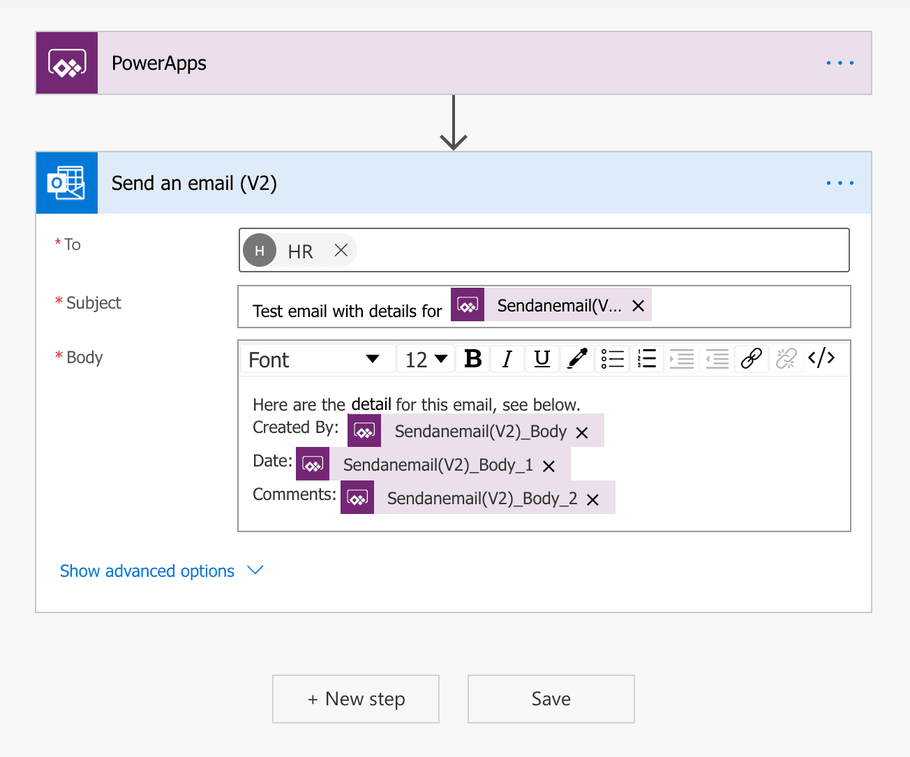 You can use Power Automate to create logic that performs one or more tasks when an event occurs in a canvas app. For example, configure a button to execute a flow to do one of the following: create an item in a SharePoint list, send an email or meeting request, or add a file to OneDrive. The button could be configured to do all of those in a single Power Automate flow. You can configure any control in the app to start the flow, which continues to run even if you close Power Apps. Below is an example using Power Automate to send a flow: