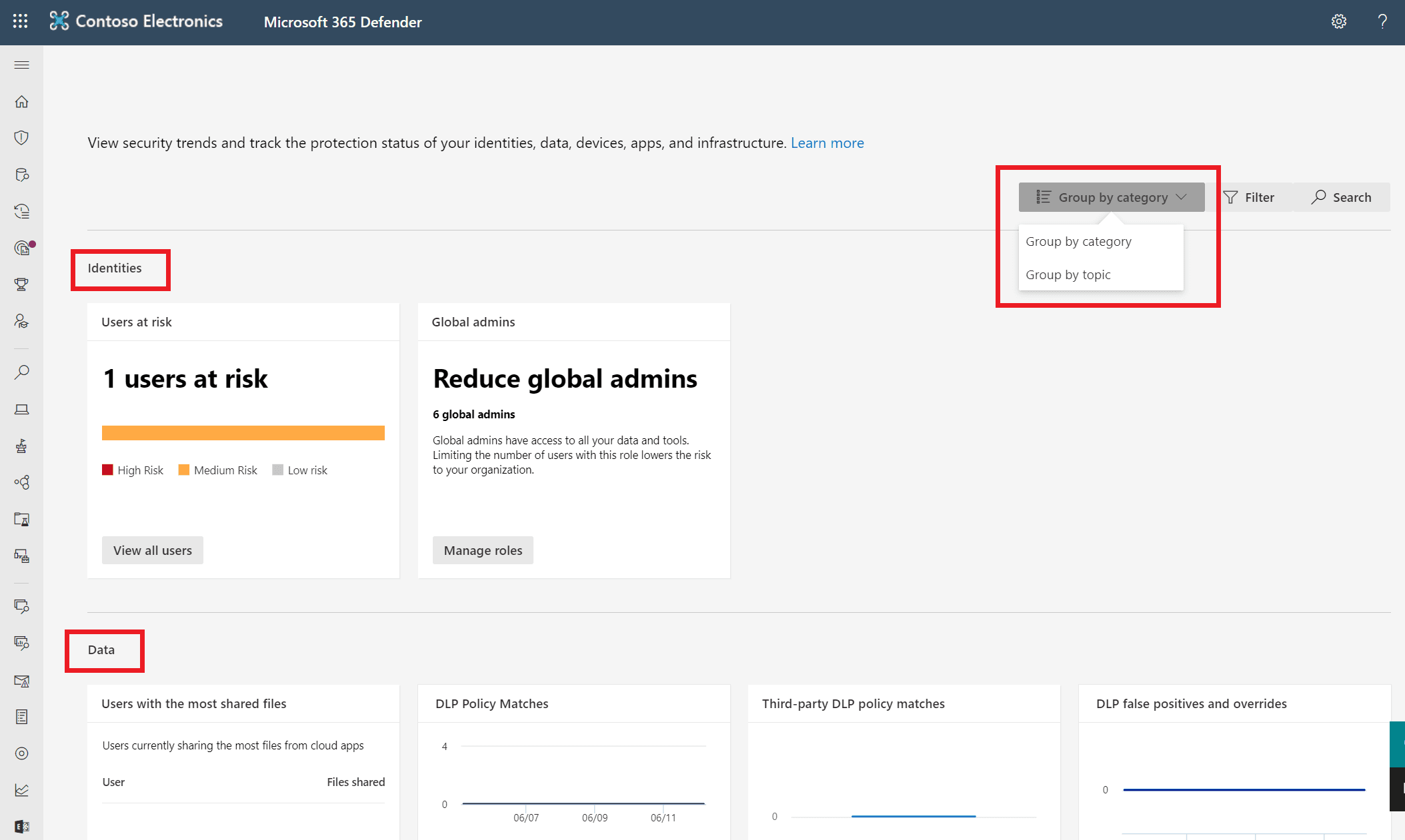 The [?] enables admins to view information about security trends and track the protection status of your identities, data, devices, apps, and infrastructure.