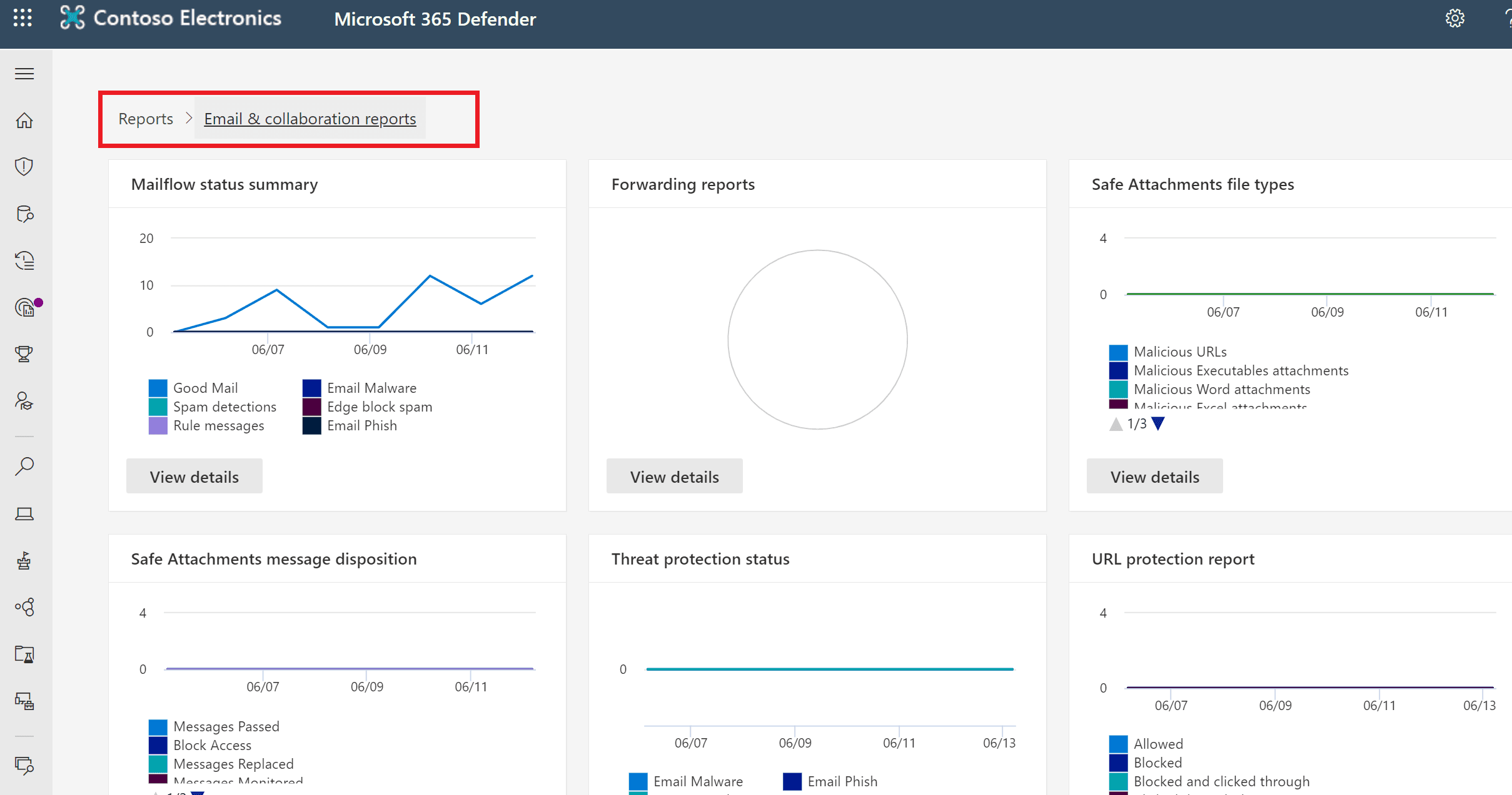 Reports: View real-time reports to monitor Microsoft Defender for Office 365 performance in your organization.