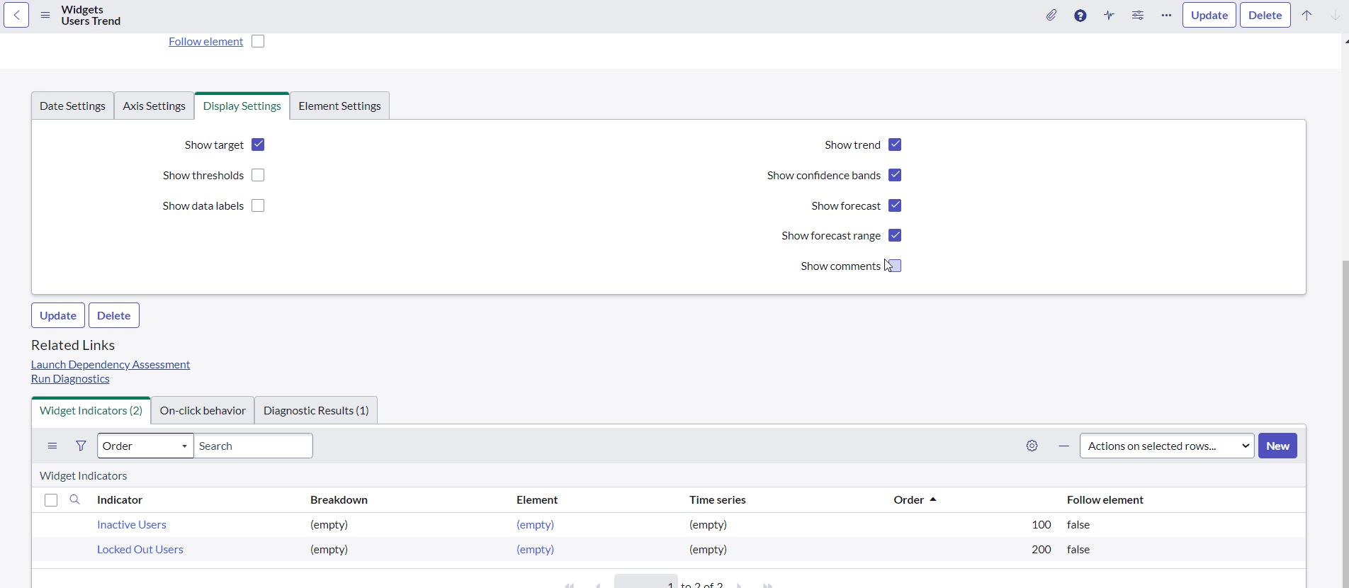 When displaying multiple Indicators in a Time series widget, which of the following will be shown for each one?